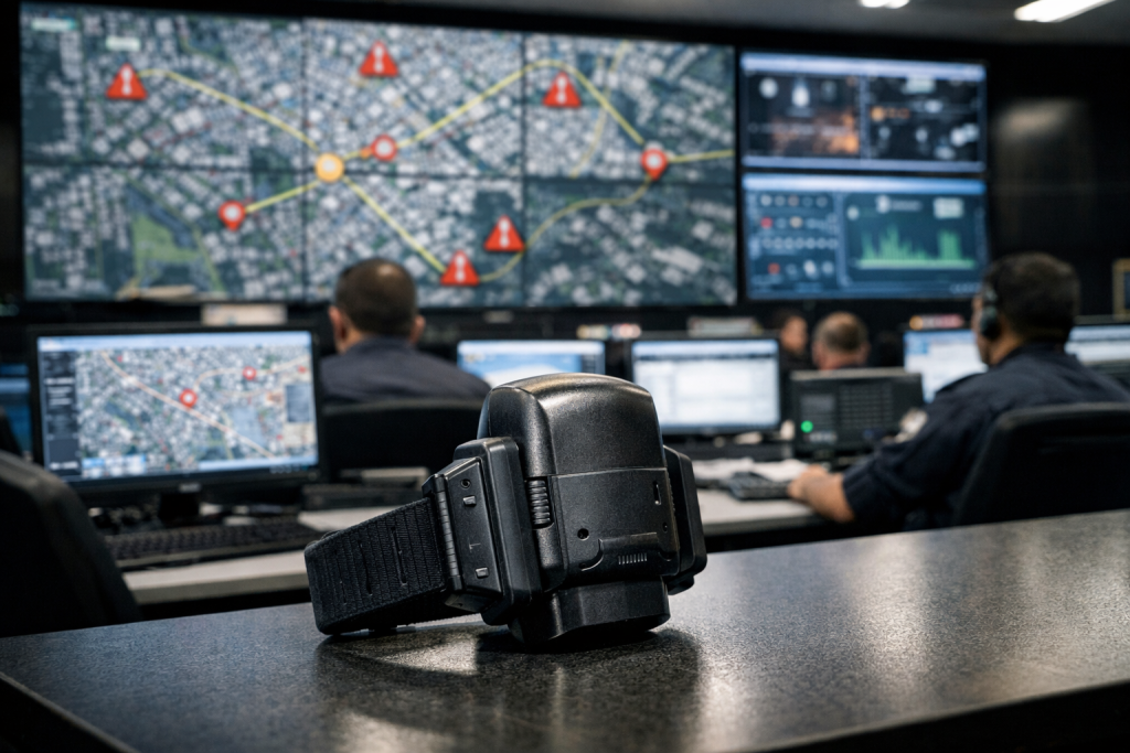 Os agressores monitorados utilizam tornozeleiras eletrônicas que permitem o acompanhamento contínuo da localização, com dados enviados diretamente ao Centro de Operações da Polícia Militar (Copom).